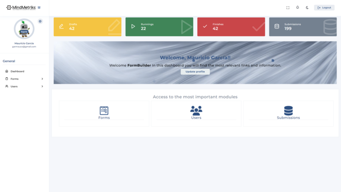 1. Dashboard Acá encontrara información general del formulario y acceso rápido a los módulos principales